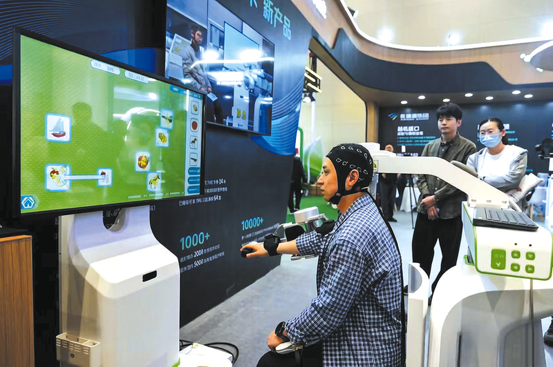 近日,2026年(第八届)世界大健康博览会在武汉光谷科技会展中心隆重启幕。本次博览会为期三天,聚焦脑科学、长寿时代、智慧医疗等产业重点领域,精心打造了20余场高水平会议活动,包括大健康产业发展大会、脑科学大会、脑机接口临床转化学术论坛、长寿时代研讨会、智慧医疗会议、健康医疗大数据论坛等。展会期间,共吸引120余位国内外知名企业家、院士专家参会,围绕产业前沿热点、技术创新方向及发展趋势展开深入交流探讨。同期举办的展览面积约2万平方米,吸引316家国内外企业踊跃参展,更首次增设科技助残展区与国家一类新药展示专区,精准对接大健康产业发展新需求、新趋势。图为工作人员正在演示“光电双模态”脑机接口康复系统。 中新社供图