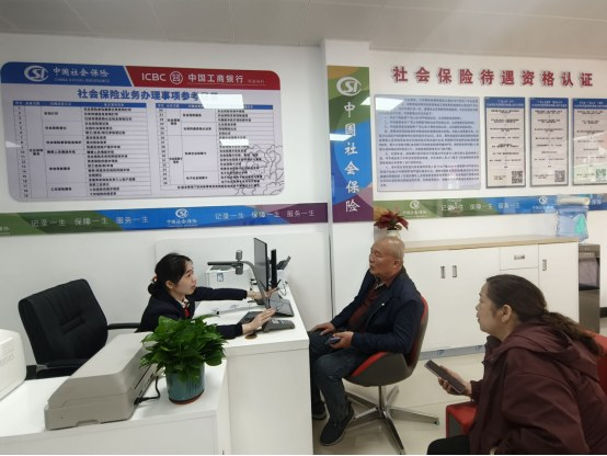在社保服务合作网点内,工行员工正在为客户办理相关业务。