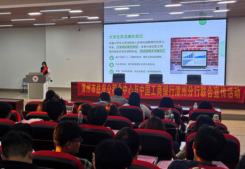 活动当天,营业部选派业务骨干走上宽敞明亮的学院礼堂讲台,以PPT形式进行集中授课,系统讲解了住房公积金的保障性、互助性、自由缴存与提取政策,以及通过缴存公积金享受低息贷款购房、支持大学生在漳创业就业安居等相关人才政策。在互动环节,学生们踊跃提问,围绕“灵活就业人员如何办理公积金缴存”等问题展开热烈交流。